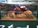 Features highly adjustable suspension, moving windshield, Spectraflame red finish, Real Riders 5-spoke wheels with off-road tires and Firestone tampo, black roll bar, clear windshield, and diecast/diecast construction. Painted details include interior front and back, side-mounted tools, and matte black wheel hubs.